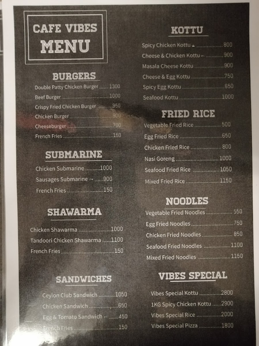 Welcome to Cafe Vibes, a gem nestled along the Kandy-Colombo Road in Mawanella, Sri Lanka. This delightful cafe offers a unique menu that celebrates flavor and quality, drawing customers in with its warm atmosphere and attentive service.